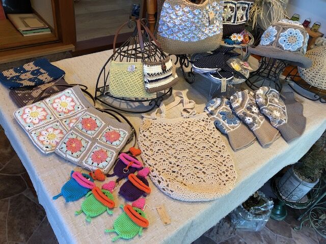さて、出店に合わせて、バッグや帽子など、いろんな編み物の小物を作って出品されてました。