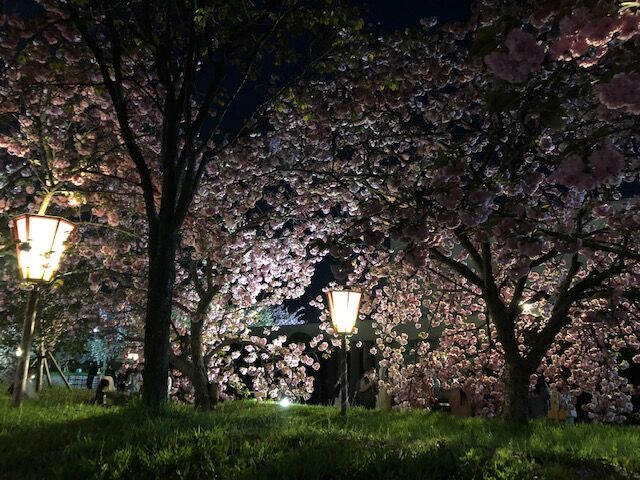 みごとな満開で、八重桜ばかりの桜並木は、幻想的でとても美しかったですよ。