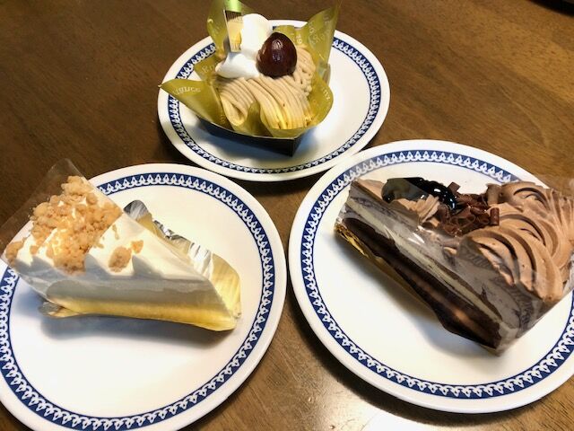 仕事帰りに贈り物のお菓子を買いに立ち寄って、自分もケーキが食べたくなったそうで。