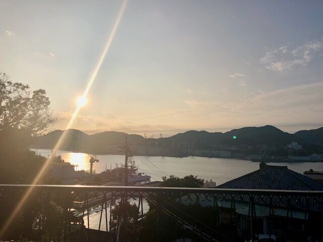 長崎の港や街の風景(斜面にぎっしり家が立ち並んでいる様子)がよく見えます。