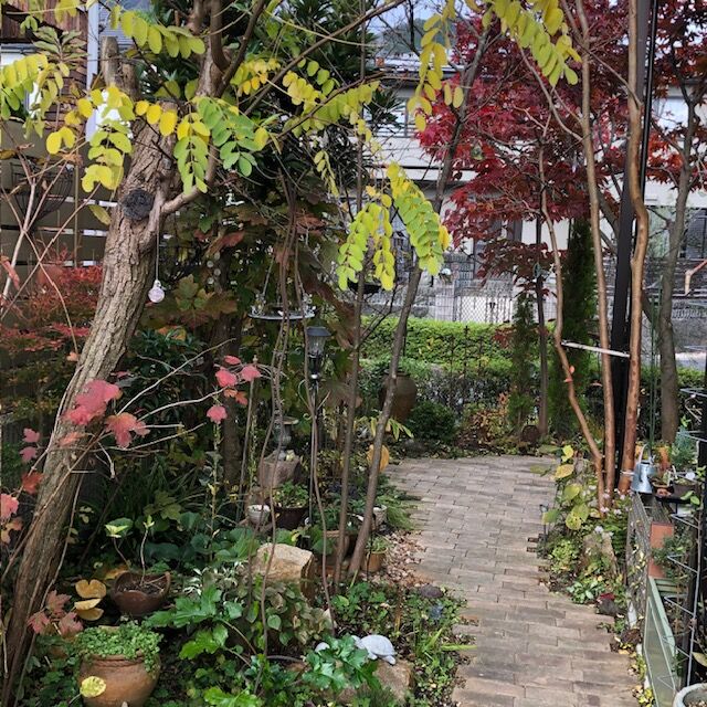 春のように花盛りのお庭ではありませんが、赤くなった紅葉や黄色い葉っぱなども趣きがあり、KONOHAさんのお庭はいつ来てもきれいです。
