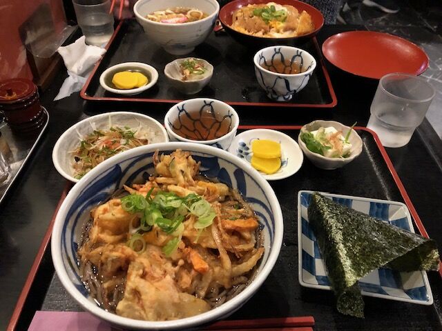 でも、かき揚げに押され、ちょっとおにぎりまでは無理で、夫に譲りました。