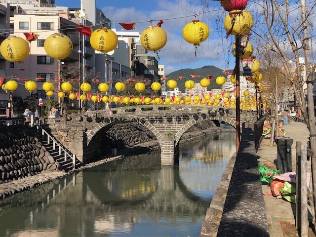 スーパーに買い物に出た時の、ある日の長崎、中島川沿い。