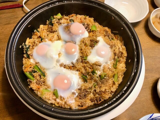 娘が帰ってきた休日に、久しぶりにホットプレートでビビンバを作りました。
